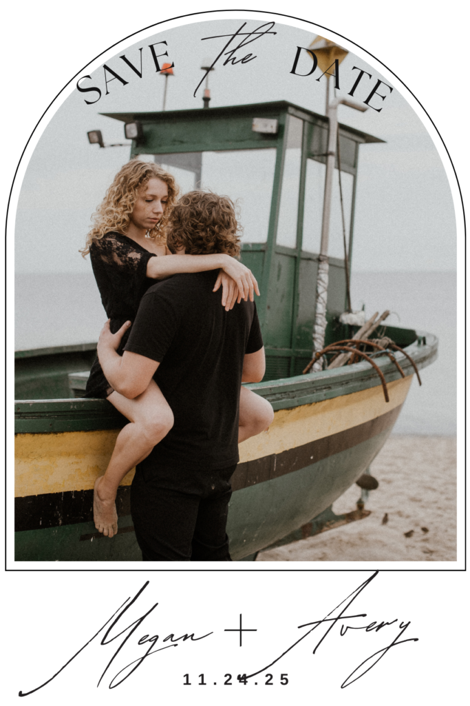 Dieser Entwurf vereint die zarte Schönheit von Schlichtheit und Eleganz. Mit einer geschwungenen, handschriftlichen Schriftart und einem harmonischen Bildarrangement strahlt diese Karte pure Romantik aus. Das Paarfoto steht im Zentrum und wird von dezenten Verzierungen umrahmt – ideal, um die Magie eurer Liebe auf einzigartige Weise festzuhalten.